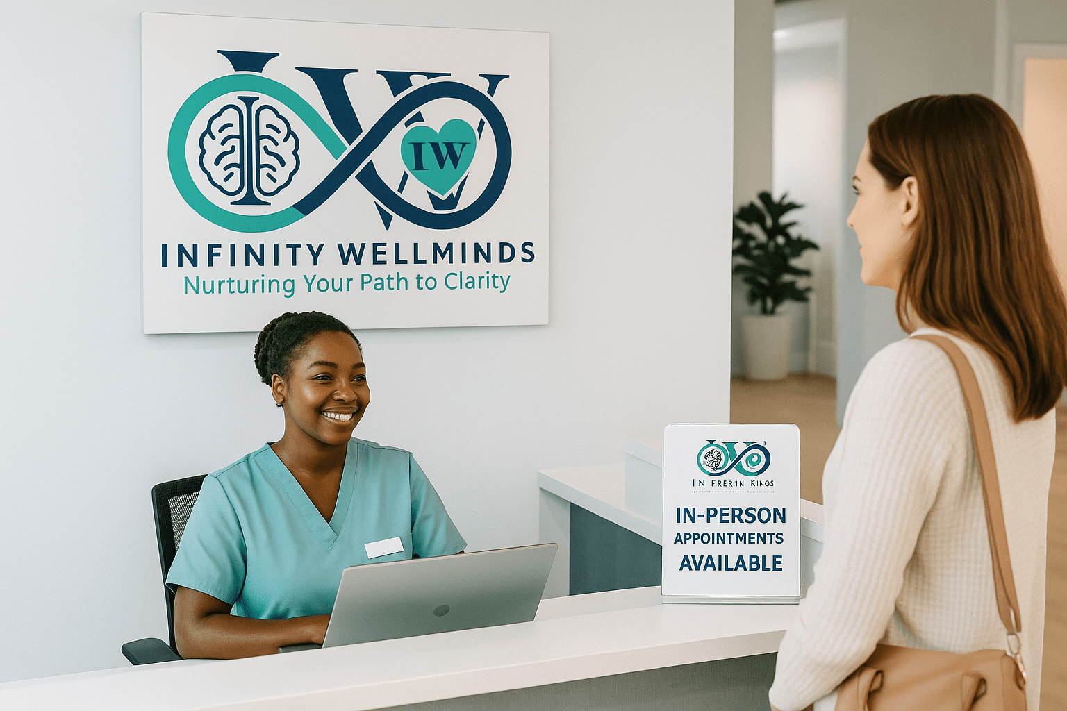 Infinity Wellminds Services PLLC is here to provide top-notch psychiatric care through both in-person and telehealth services throughout Washington State. Under the guidance of Christencia Obinna-Igbokwe, MSN, PMHNP-BC, our dedicated team addresses a range of issues, including depression, anxiety, ADHD, PTSD, and more, using proven medication management and compassionate therapy.
